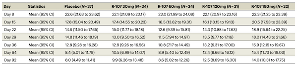 在R-107剂型设计方面,由于采用了聚乙烯氧化物的处理,R-107片剂非常坚硬,难以破碎,因此能够有效避免药物滥用的情况。也因此,在研究随机化阶段,多数患者在家中完成给药。