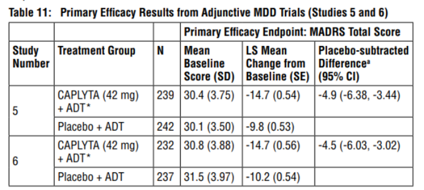 本次获批辅助治疗重度抑郁症,主要基于两项名为501和502的全球多中心、双盲、安慰剂对照Ⅲ期临床试验的积极结果。两项研究均达到主要终点和关键次要终点:与“抗抑郁药+安慰剂”相比,“抗抑郁药+Lumateperone”在蒙哥马利-阿斯伯格抑郁量表(MADRS)总分和临床总体印象量表-严重程度(CGI-S)总分上,均表现出具有统计学意义和临床意义的改善。