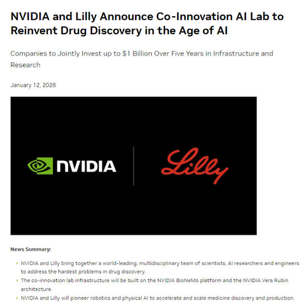 礼来首席执行官David Ricks表示:“将我们海量的数据和科学知识,与英伟达的计算能力和模型构建专长相结合,可能会彻底重塑我们所熟知的药物研发方式。”