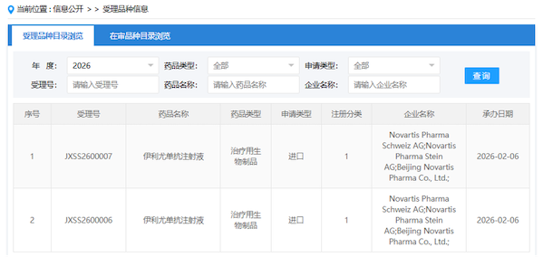 2月6日,CDE网站显示,诺华的伊利尤单抗(ianalumab)在华申报上市。