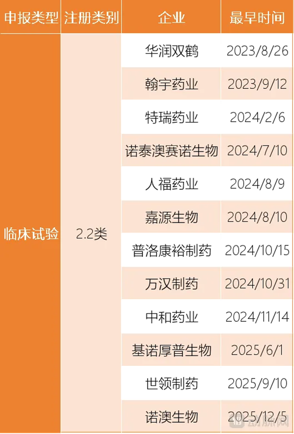 部分正在开展临床试验的2.2类国产司美格鲁肽厂商 数据来源:根据公开信息整理